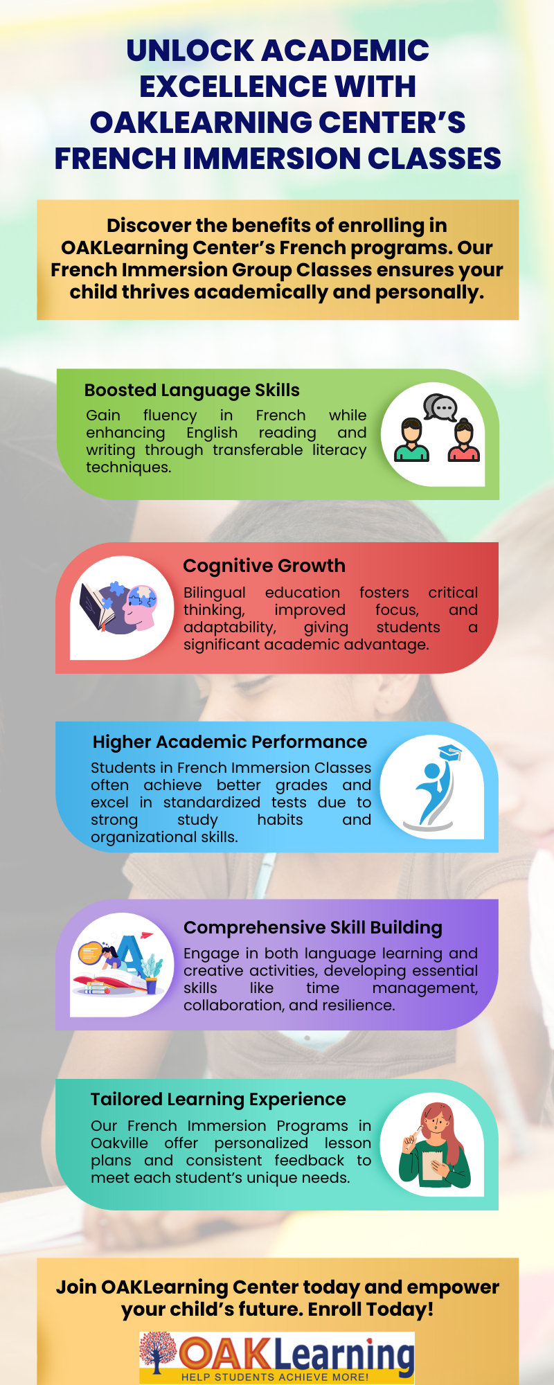 Discover the benefits of enrolling in OAKLearning Center’s French programs. Our French Immersion Group Classes ensures your child thrives academically and personally.